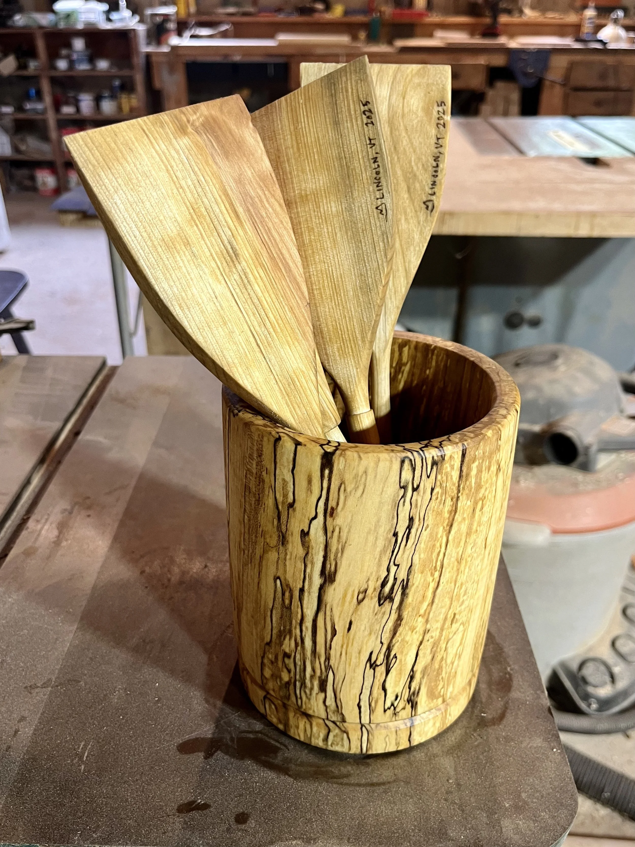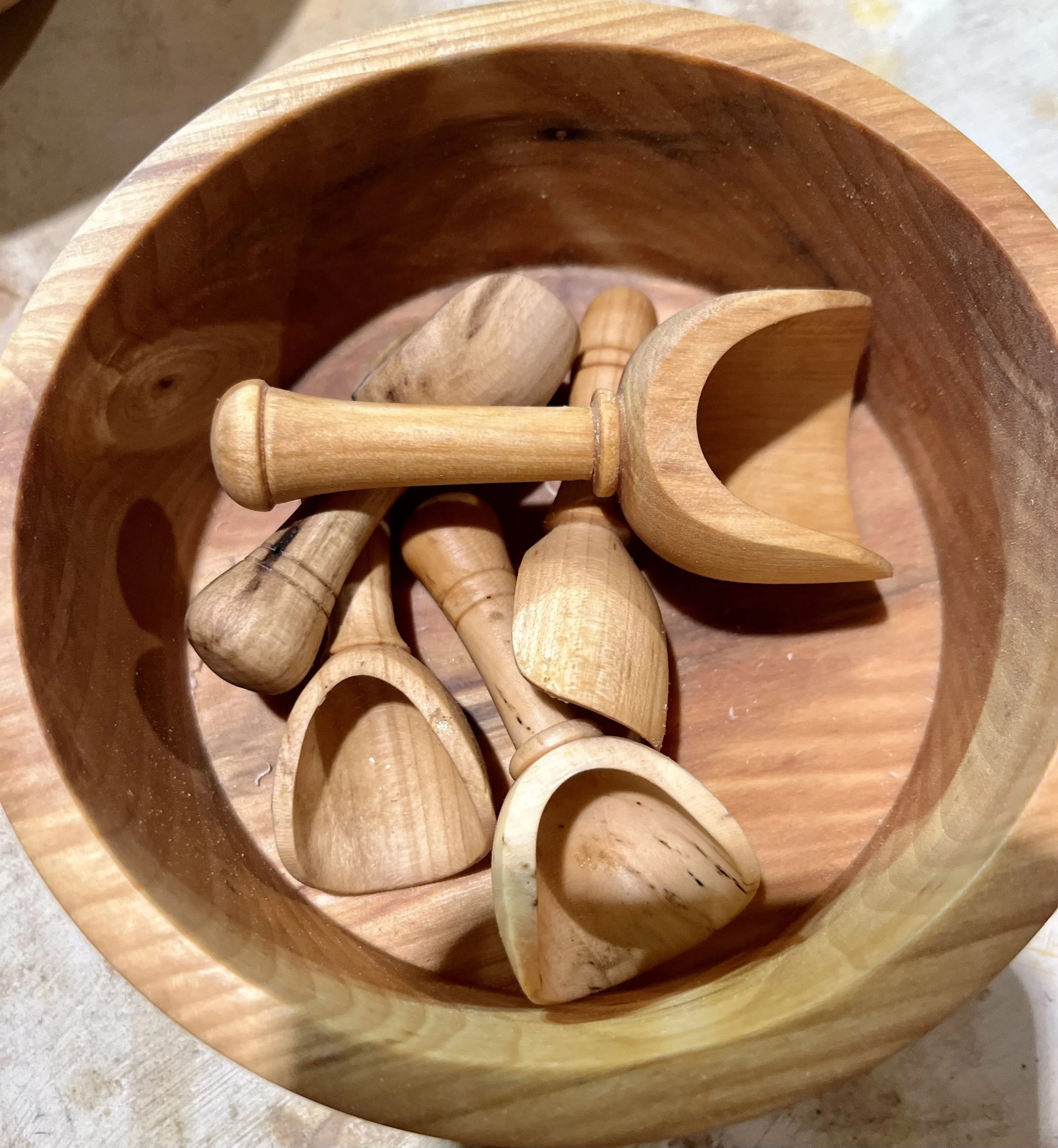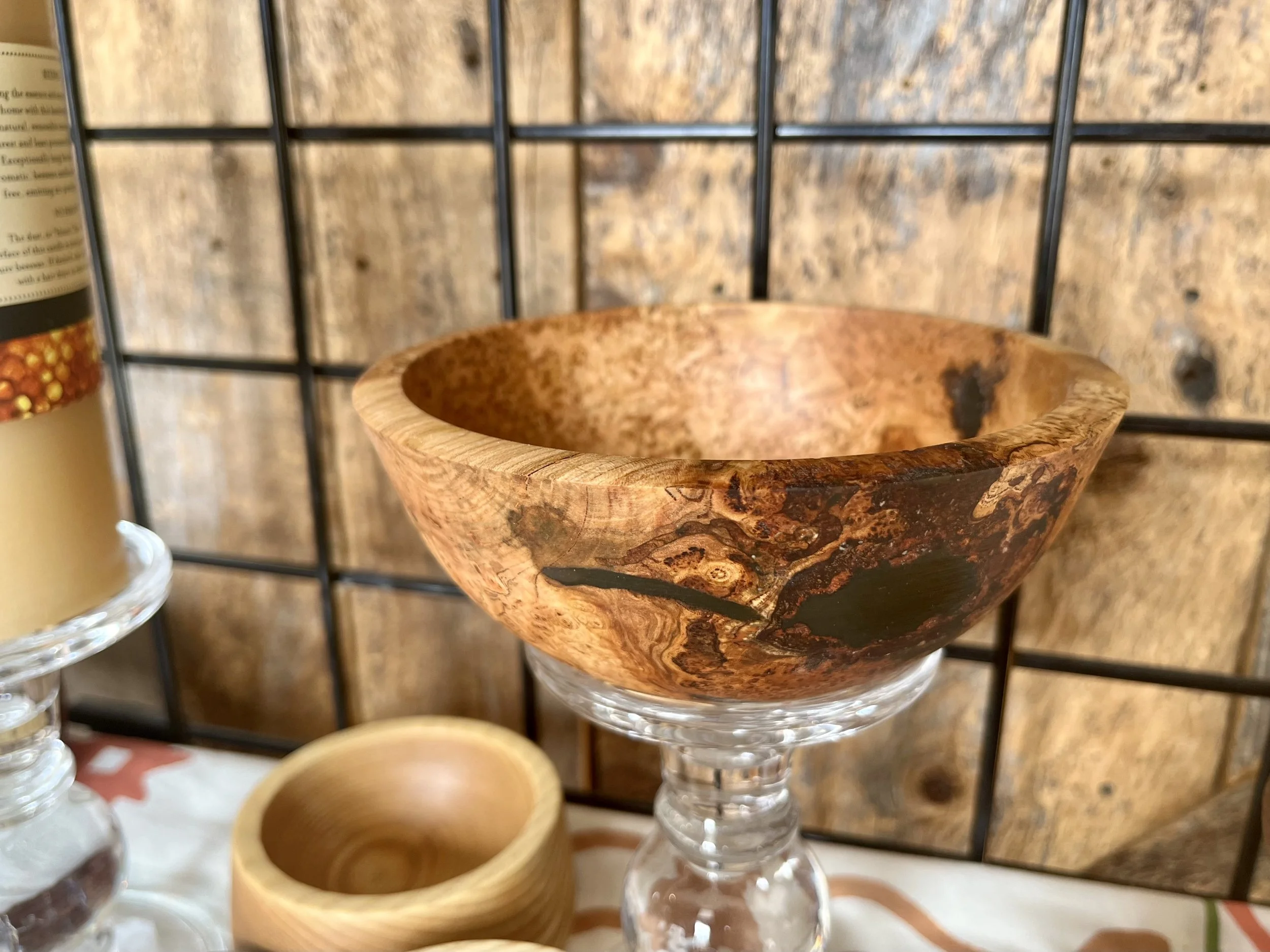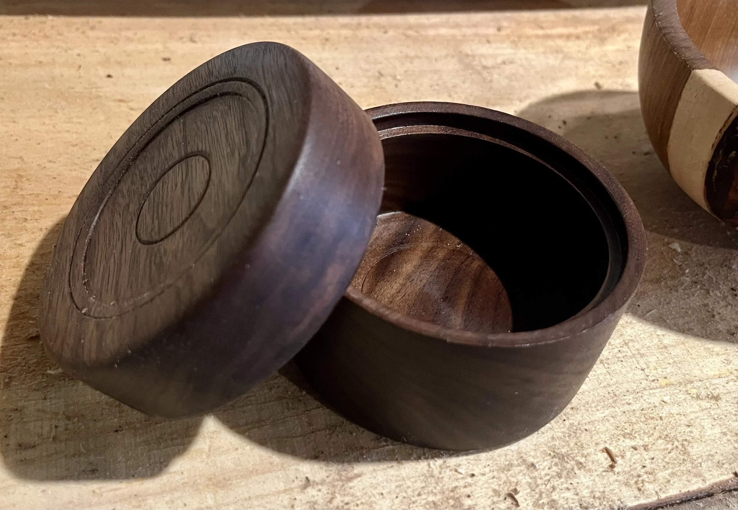 Left: Headphone Caddy, Oak, 3" Right: Catch-all Bowl, White Birch, 6.5"